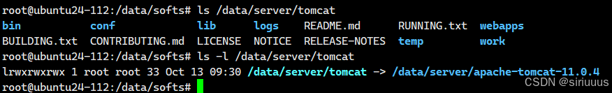 ln -s /data/server/apache-tomcat-11.0.4 /data/server/tomcat