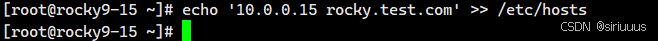echo '10.0.0.15 rocky.test.com' >> /etc/hosts