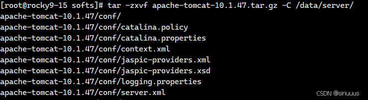 tar -zxvf apache-tomcat-10.1.47.tar.gz -C /data/server/