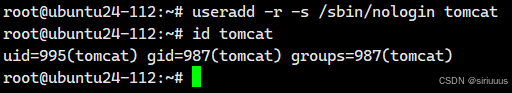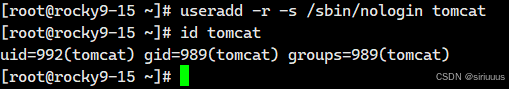 useradd -r -s /sbin/nologin tomcat