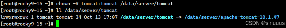 chown -R tomcat:tomcat /data/server/tomcat