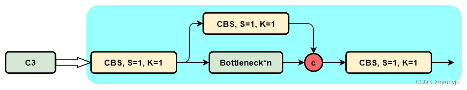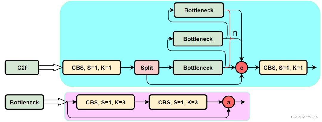 C3 和 C2F区别:C3串联Bottleneck, C2F并联Bottleneck