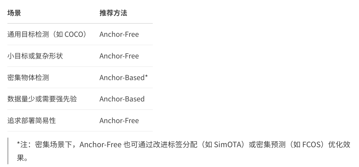 - 精度有限:在某些情况下,Anchor-Free 方法的检测精度可能不如Anchor-Based 方法。