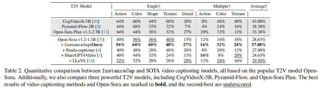 - 实例感知描述生成:首次系统性地将“实例级语义”引入T2V的描述生成环节。