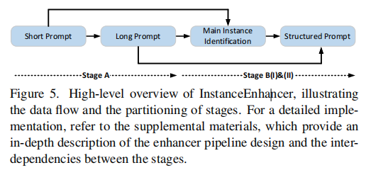 展示了InstanceEnhancer的具体实现流程,包含两个阶段。