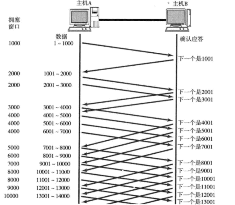 拥塞窗口增长速度是指数级别的。"慢启动" 只是指初使时慢,但是增长速度非常快。拥塞窗口数量从1开始,2^n