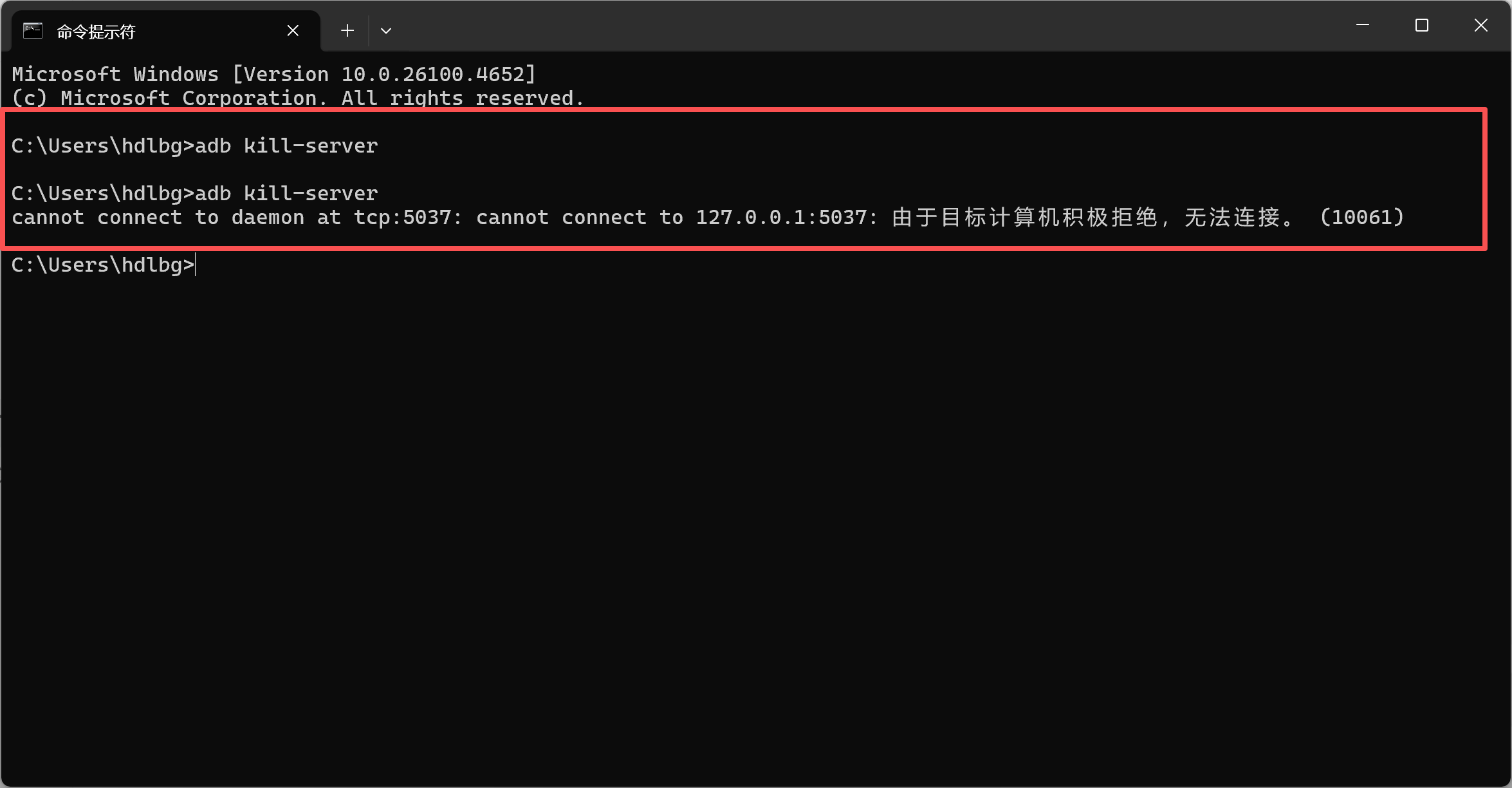 表示 ADB 服务当前没有运行,现在正在启动,并监听本地 5037
