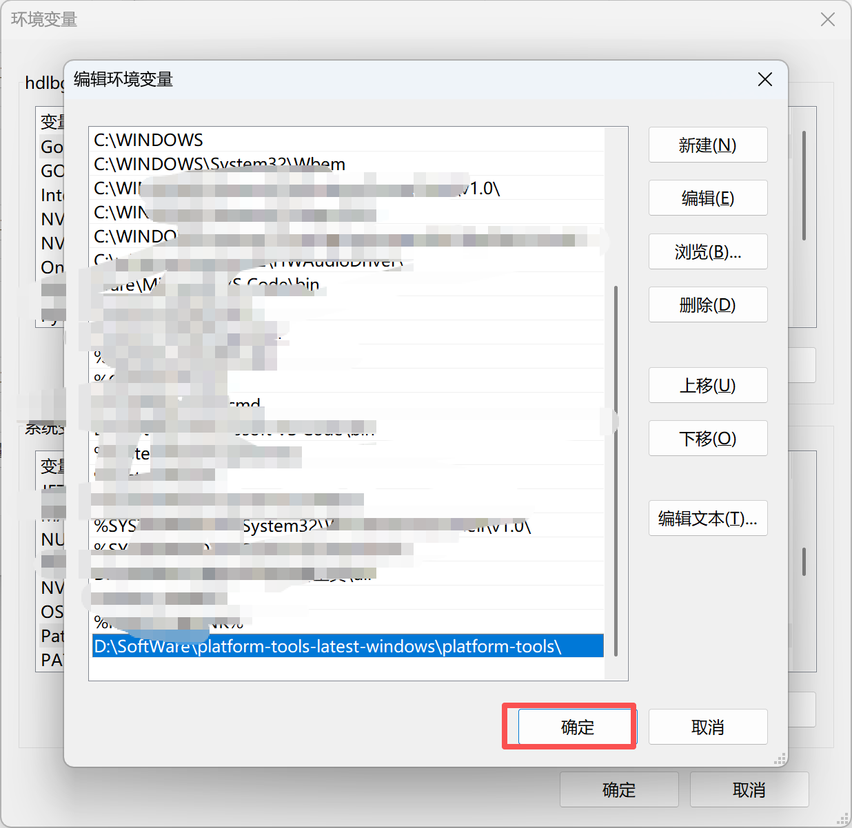 高级环境变量>系统变量中找到path>将adb安装目录复制进去