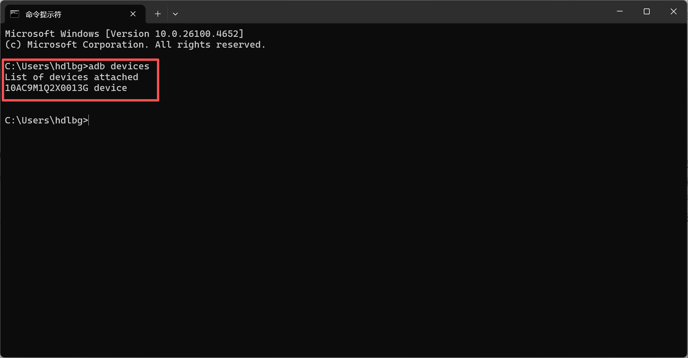 :状态为“device”,表示 ADB 已成功连接并可以与该设备通信。