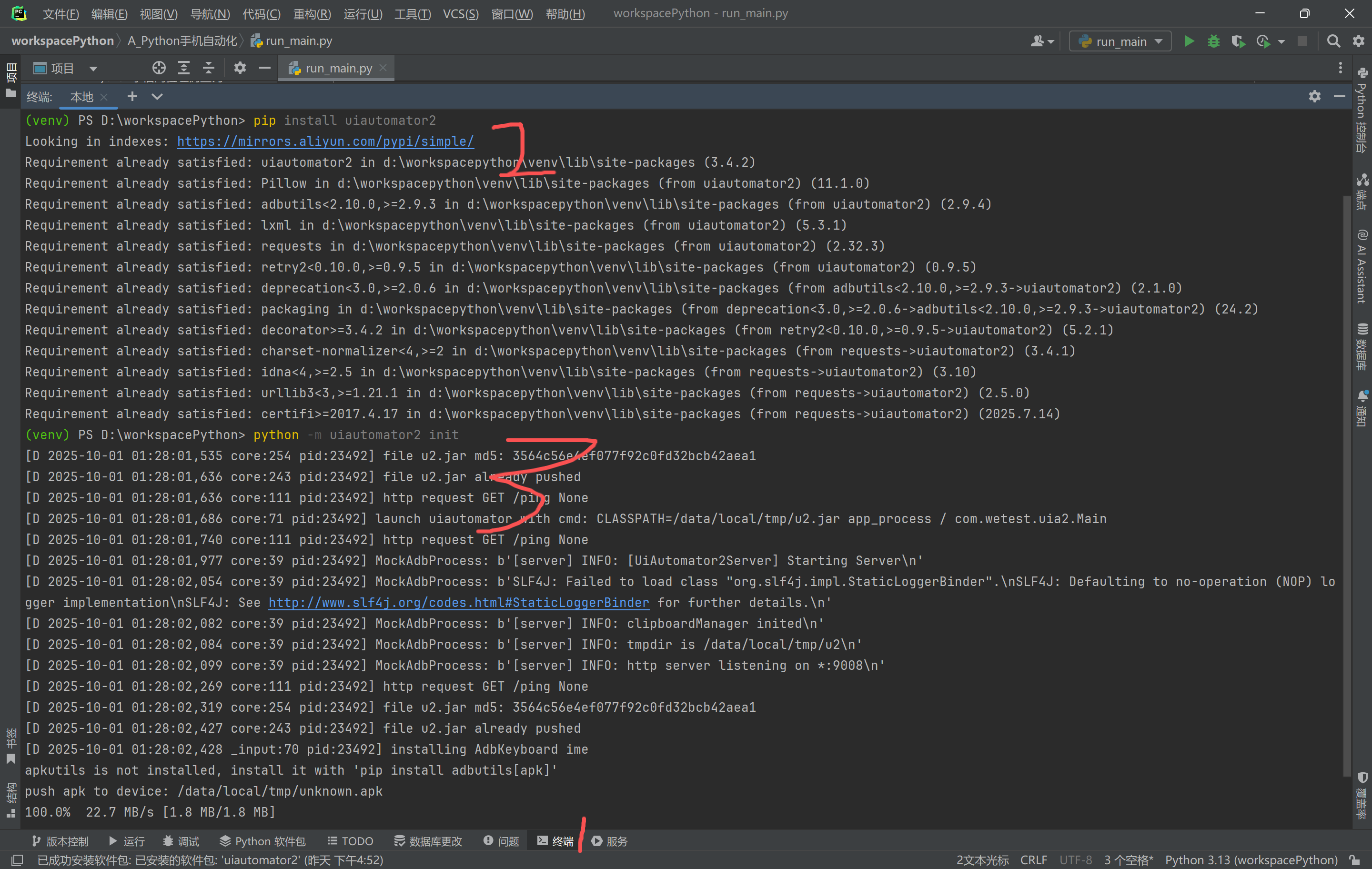 安装 uiautomator2使用 pip 安装和ATX小黄车
