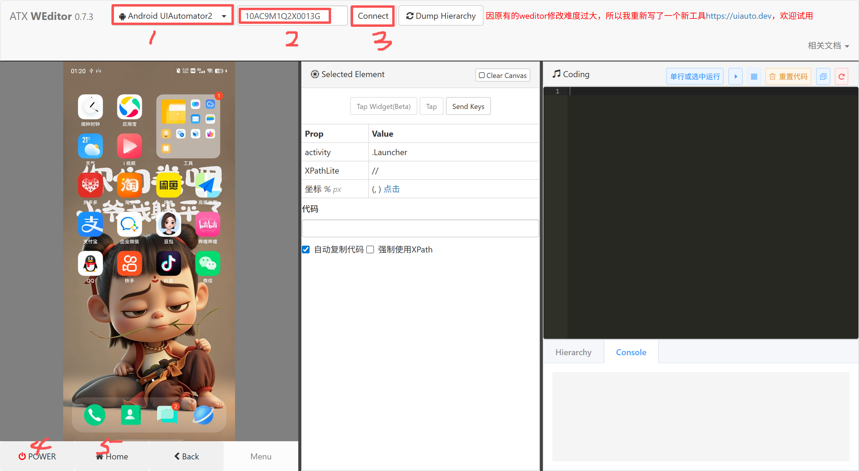 python -m weditor #启动,自动打开一个网页证明安装成功