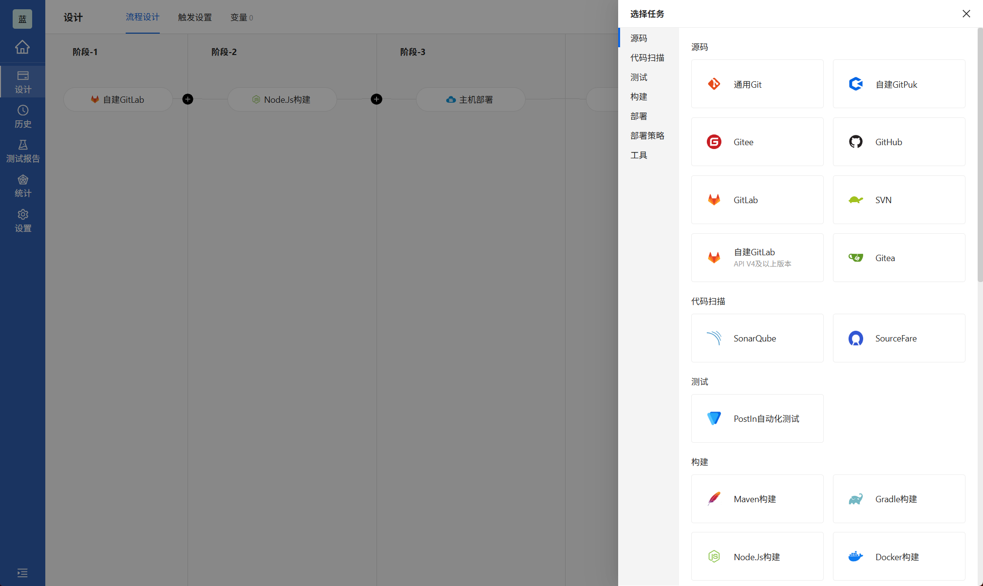代码扫描 | 云效Flow支持Java、JavaScript、Go语言代码扫描;云效Code up支持多语言代码扫描。 | 支持集成SonarQube以及TikLab DevOps套件sourcefare进行静态代码分析。 |