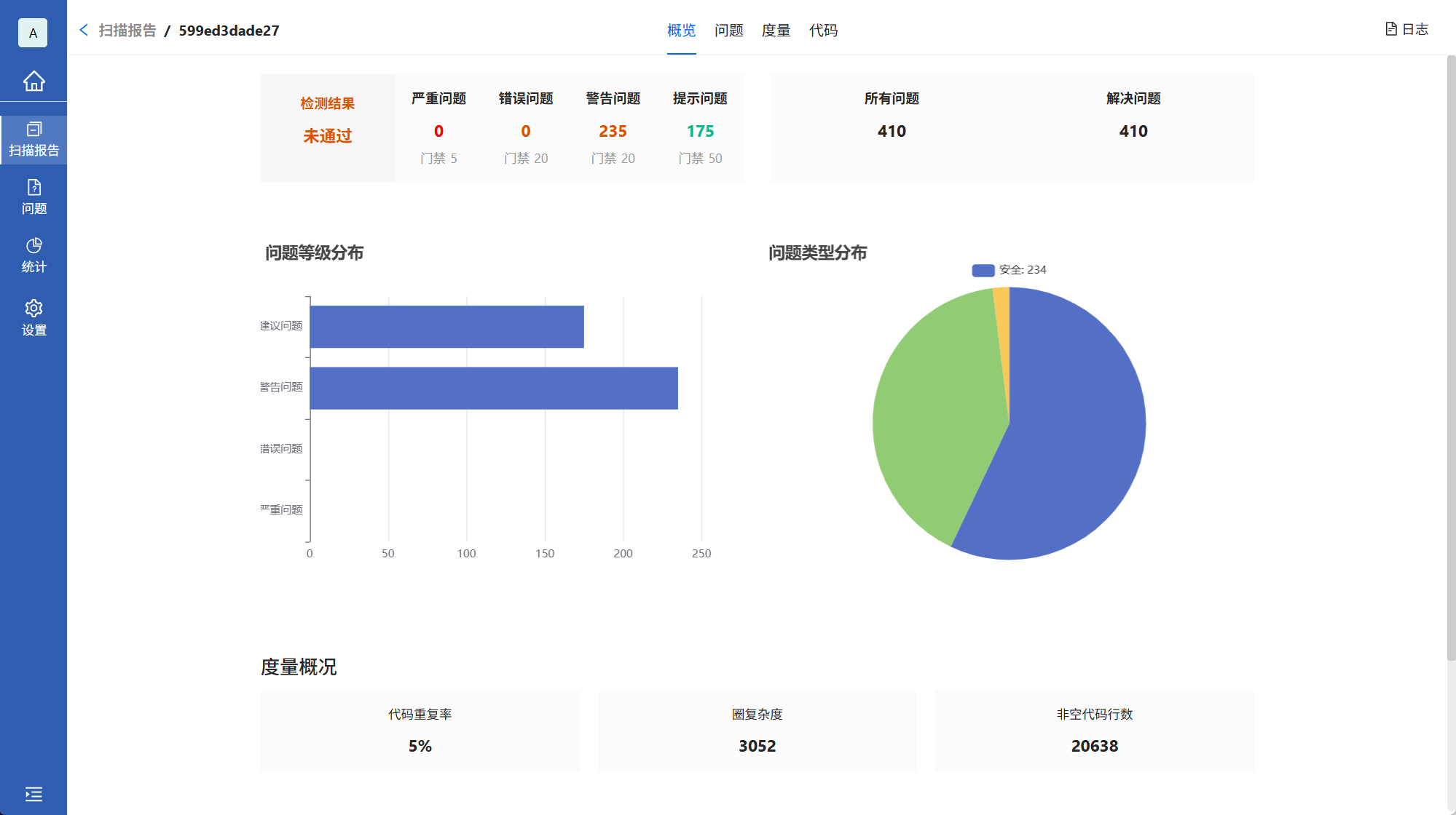 代码扫描 | 无单独代码扫描产品,云效 Codeup和Flow集成代码扫描功能 | sourcefare支持代码安全漏洞、编码缺陷和合规性问题扫描,以及代码重复率、复杂度、覆盖率扫描等功能模块。 |
