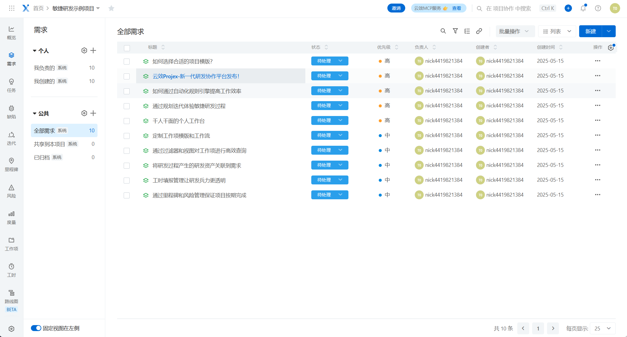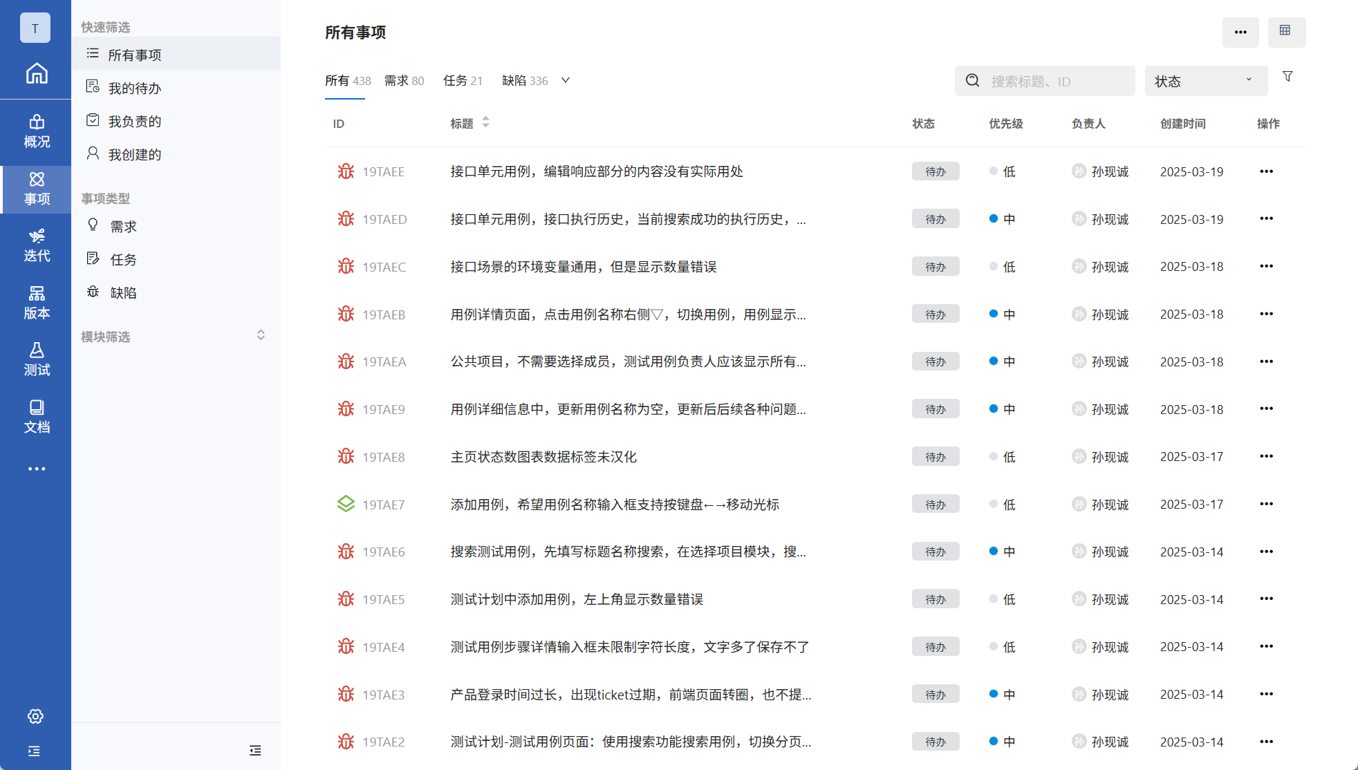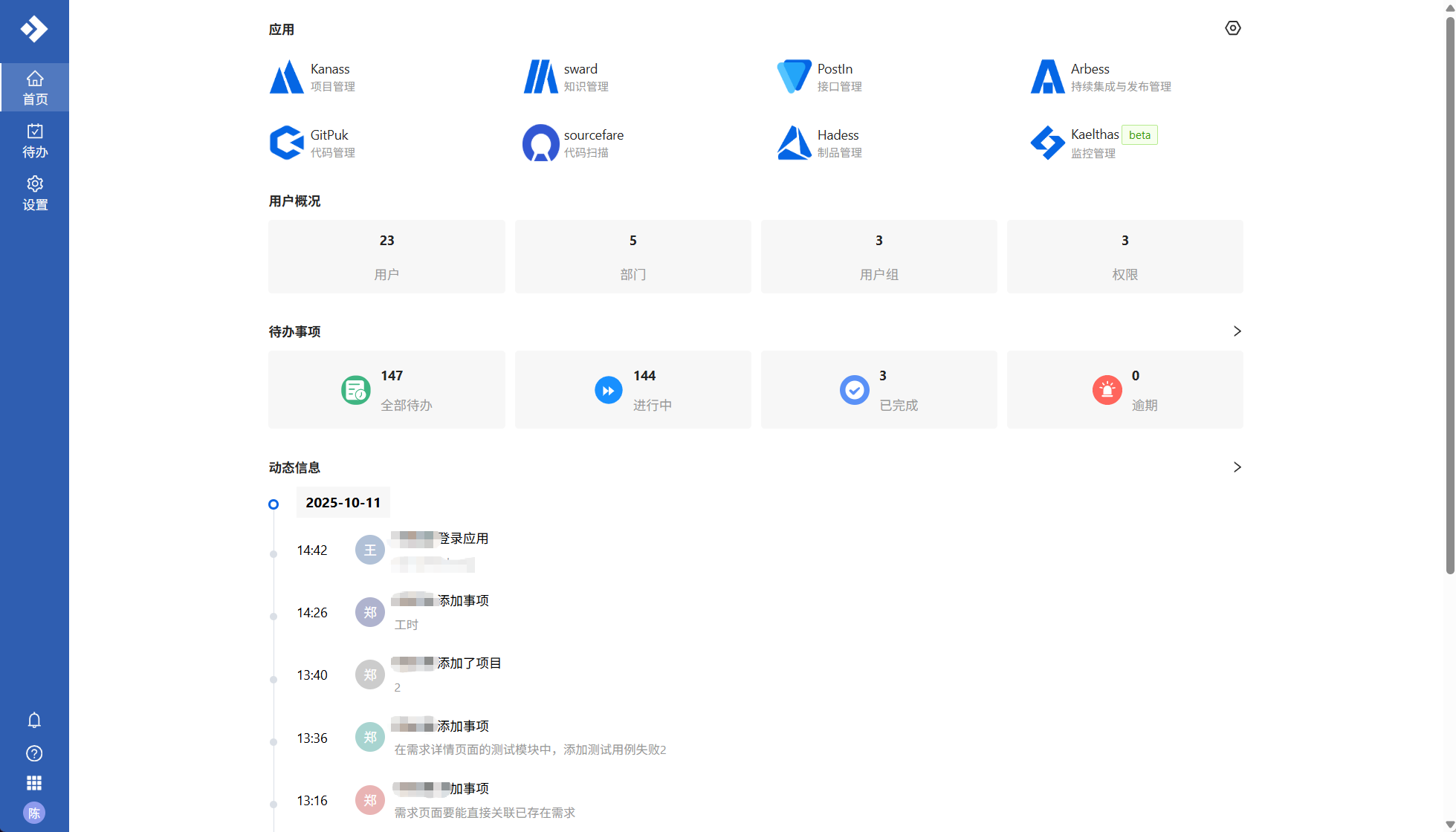 项目管理 | 云效 Projex提供项目管理、需求管理、缺陷管理、任务管理、迭代规划等功能及效能数据统计 | Kanass包含产品管理、事项管理(需求、任务、缺陷)、工时管理、测试管理(功能用例)、统计分析等功能模块。 |