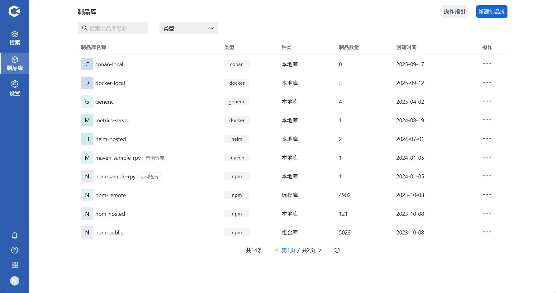 制品库管理 | 云效 Packages提供通用制品、Maven、Npm、PyPI、NuGet 等多种类型制品托管。 | Hadess支持Maven、Npm、Docker 、Go、Helm、Generic类型制品管理。 |