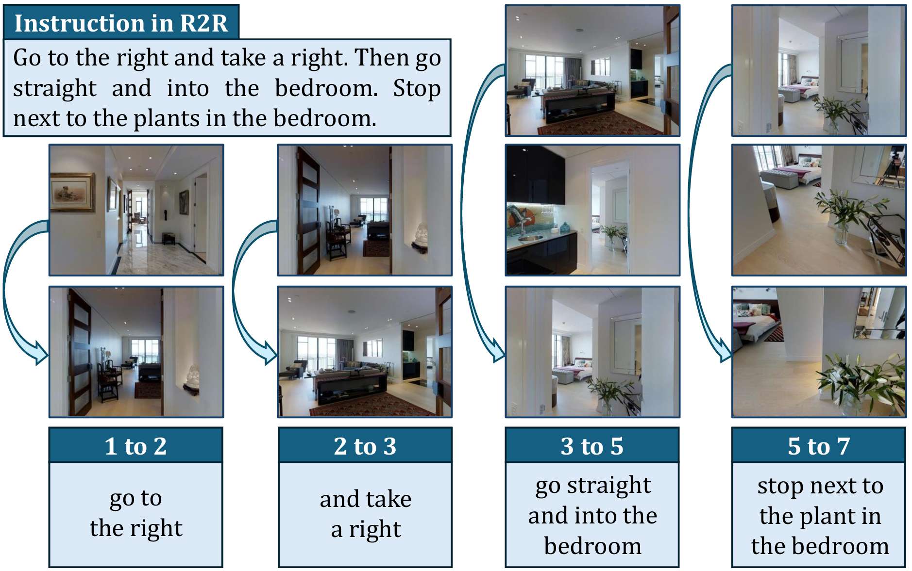 - 根据高级指令和目标对象的常见位置确定目标房间。