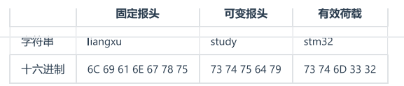 是不是有点像火车?一列火车拉了三个车厢,每个车厢拉的是固定报头、可变报头、有效载荷的 十六进制数。