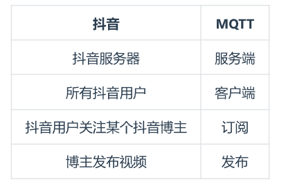 这么说是不是一头雾水?我打个比方,将整个MQTT比作我们熟悉的视频软件,一-对应关系如 下。