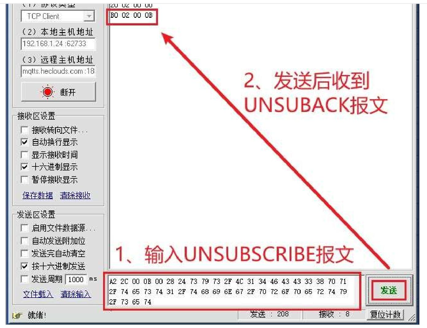 我们取消订阅刚刚订阅的$sys/L14FCC38pq/test1/thing/property/set。