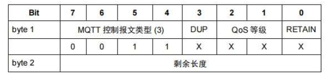 结构如下图,固定报头中消息类型是3,标志位是未知,剩余长度未知。
