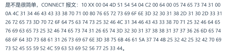 接下来我会以MQTT报文的CONNECT报文为例,详细的解释MQTT报文的组成与意义。