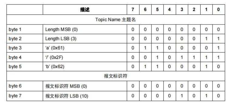 SUBSCRIBE报文的可变头的十六进制是:00 0A。