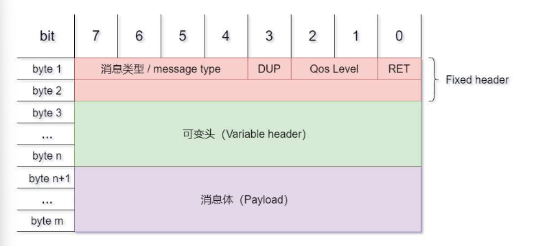 一个MQTT报文由固定报头、可变报头、有效载荷三部分组成