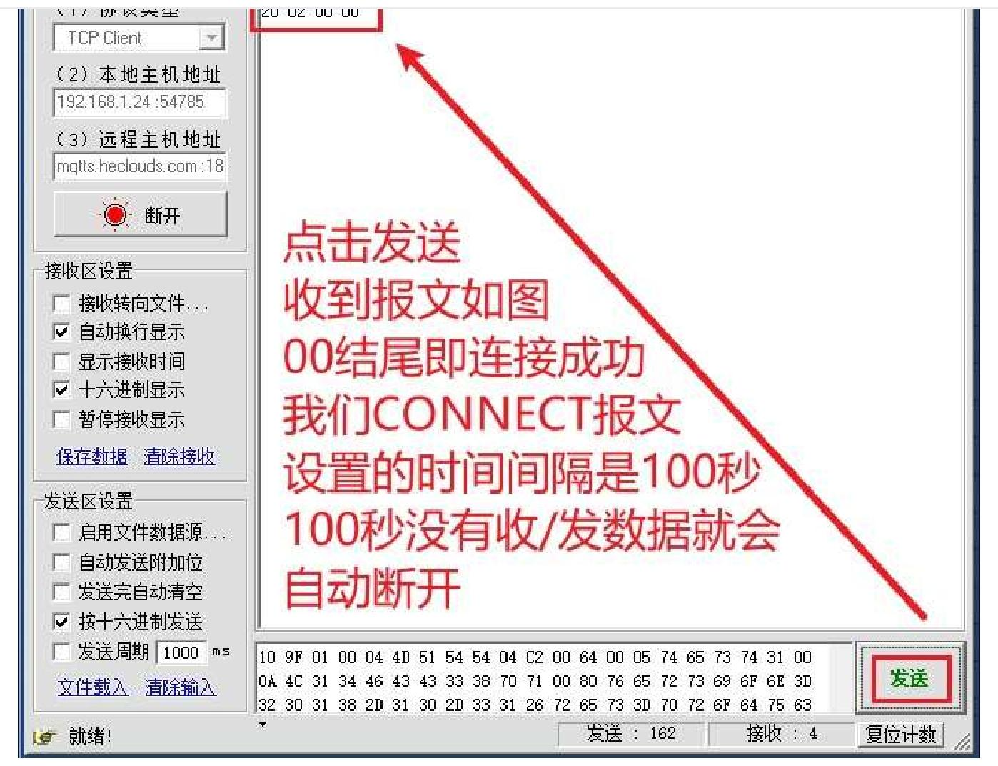 ·RETAIN:服务端发送PUBLISH报文给客户端时,如果消息是作为客户端一个新订阅的结果发 送,报文的保留标志设为1。当一个PUBLISH报文发送给客户端是因为匹配一个已建立的订 阅时,服务端必须将保留标志设为0,不管它收到的这个消息中保留标志的值是多少。如果客户端发给服务端的 PUBLSH 报文的保留标志位 0,服务端不能存储这个消息也不能移除或替换任何现存的保留消息。是不是听不懂,没关系,我直接告诉大家,这里设成0就行了。