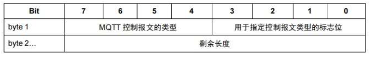 固定报头(Fixed headr),所有MQTT报文有,表示报文类型及报文的分组类标识。