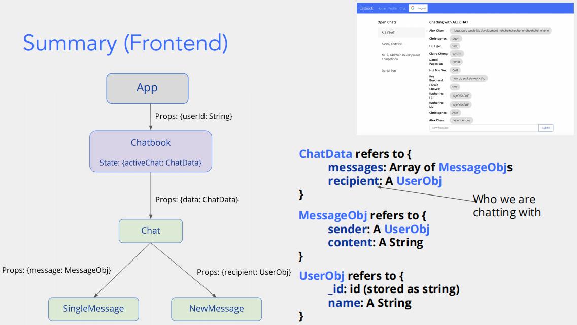 这两张图分别从前端(Frontend)和后端(Backend),总结了一个实时聊天应用的核心结构与逻辑,我们分开详细说: