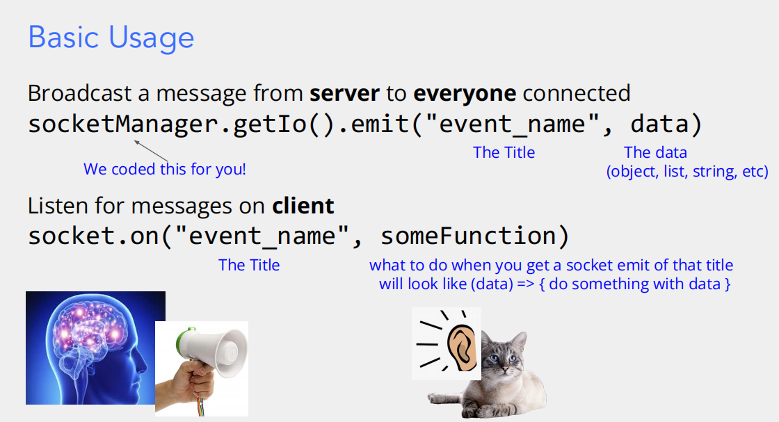 对应的消息” 时,就会执行这个函数。图中解释 “what to do when you get a socket emit of that title will look like (data) => { do something with data }