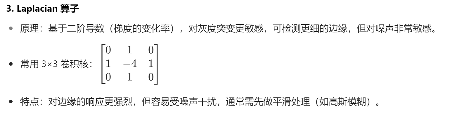 sobel_xy = cv2.addWeighted(sobel_x, 0.5, sobel_y, 0.5, 0)# 2. Laplacian 梯度运算(需先平滑以减少噪声)