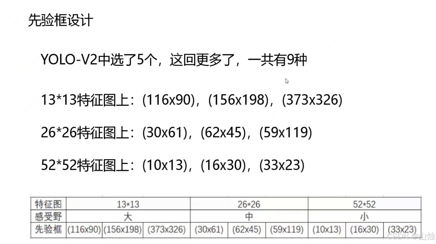 - 小尺度(52×52):(10×13), (16×30), (33×23) —— 检测小物体