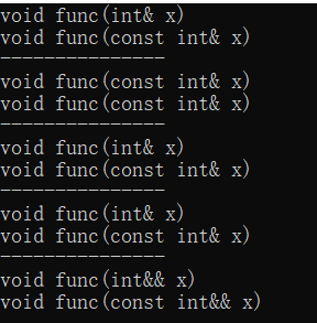 {cout << "void func(int& x)" << endl;