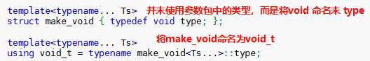 c++17之后便很少写逗号表达式了。std::void_t<decltype(x.size())的尾置返回类型的关键是std::void_t,其原型如下。