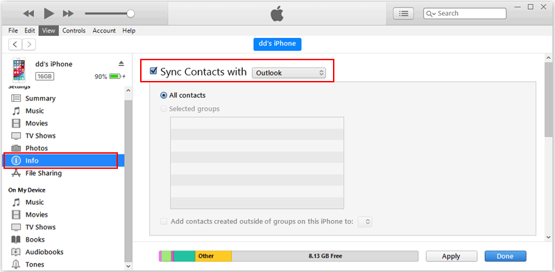 方法 3:如何通过 iTunes 将 iPhone 联系人传输到 Mac