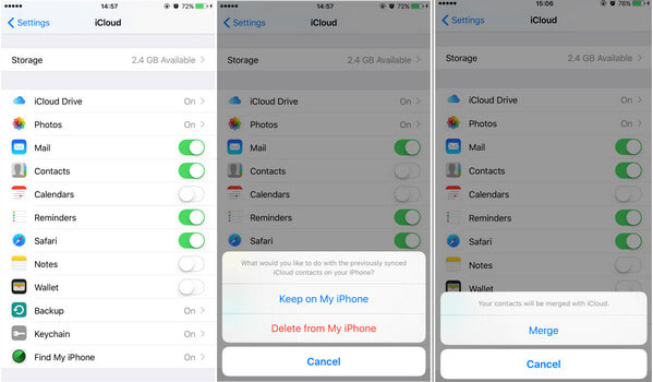 - 系统可能会提示你将现有联系人与 iCloud 中的联系人合并;点击“合并”继续。