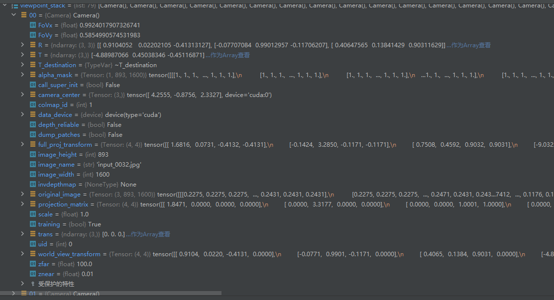self._xyz = optimizable_tensors["xyz"]self._features_dc = optimizable_tensors["f_dc"]self._features_rest = optimizable_tensors["f_rest"]self._opacity = optimizable_tensors["opacity"]self._scaling = optimizable_tensors["scaling"]self._rotation = optimizable_tensors["rotation"]
