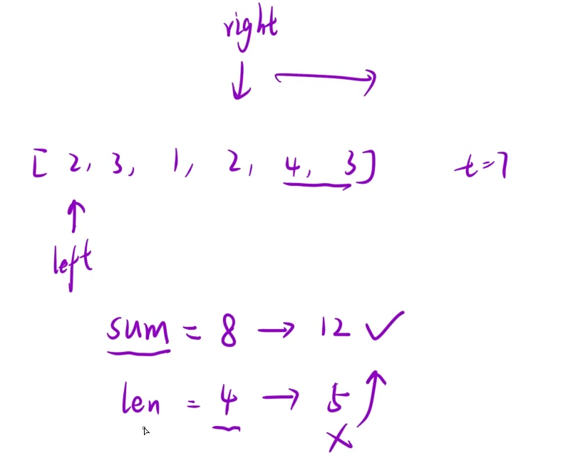 进窗口是维护窗口的信息 在这里指的是sum的值 sum和target判断 合适了就出窗口
