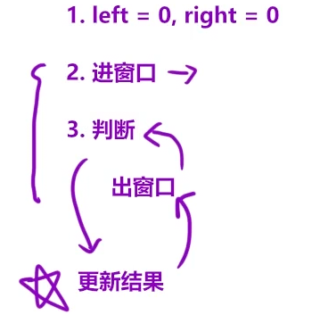 2 3步是循环 进窗口是right++ 出窗口是left++