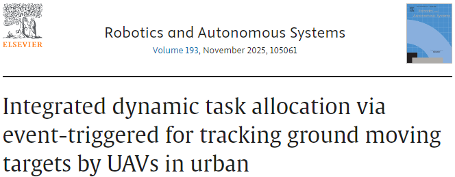 [1] Hu C, Li Y, Qu G. Integrated dynamic task allocation via event-triggered for tracking ground moving targets by UAVs in urban[J]. Robotics and Autonomous Systems, 2025: 105061.