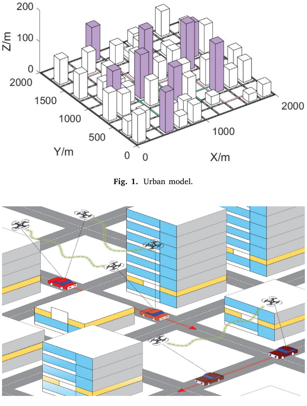 问题假设无人机同构,飞行高度一致;目标状态已知;建筑物高度已知。