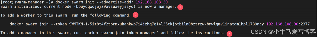 [root@swarm-manager ~]# docker swarm init --advertise-addr 192.168.108.30