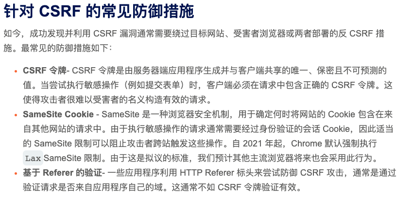 参数,完全可预测)。 - 用户处于 “已登录状态”:受害者需已登录目标网站(浏览器保存了认证 Cookie),此时攻击请求会自动携带 Cookie,服务器会误认为是用户 “主动操作”。