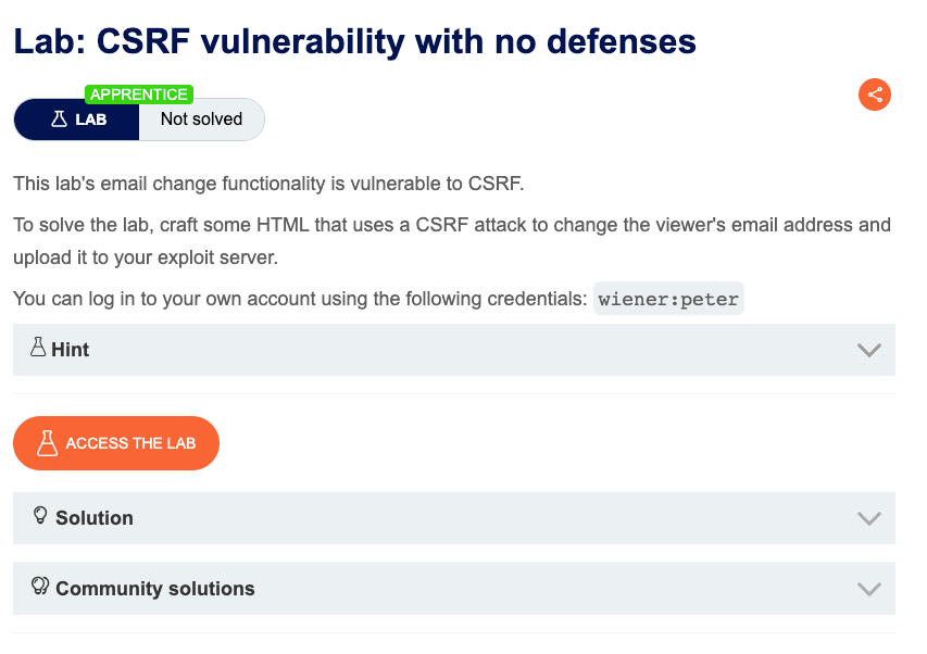 解决该 “无防御的 CSRF 漏洞” 靶场,从以下理论知识和实践步骤两部分详细说明: