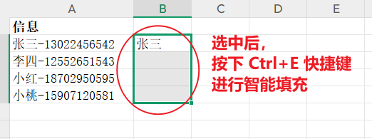4、智能快捷键【Ctrl】+E(快速智能填充)