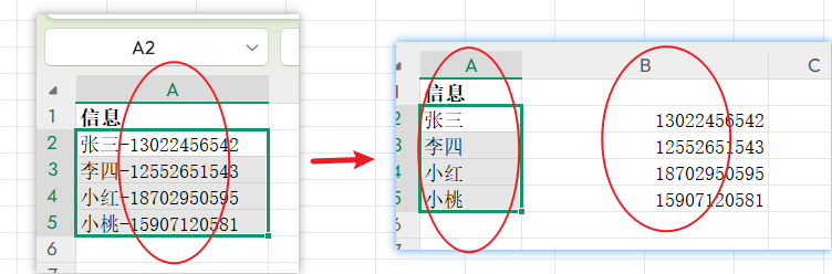 以刚才提到的客户信息表为例,假设 A 列单元格中都是 “姓名 - 电话” 这样格式的数据,要将姓名和电话分开到不同列,操作步骤如下: