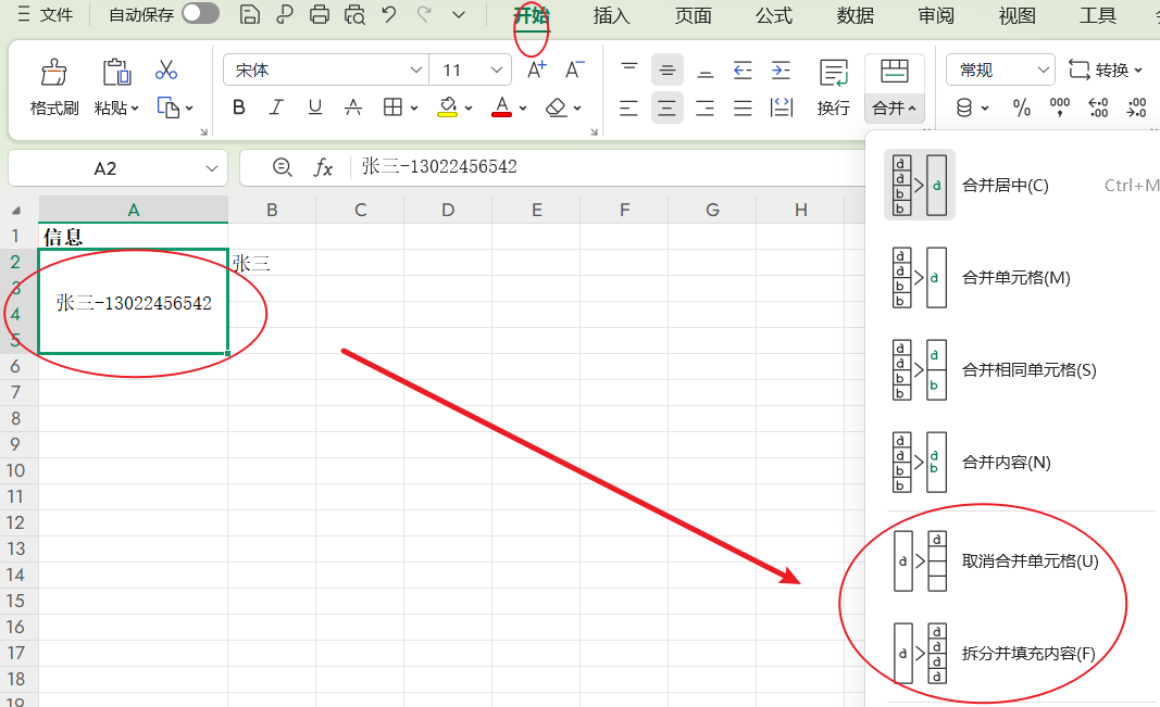此操作最简单,满足最基础的单元格合并拆分需求,不需要对单元格内的数据内容进行拆分,只是简单的对单元格拆分。