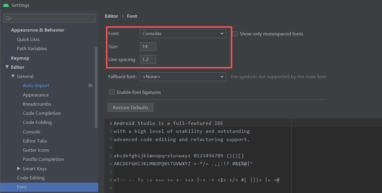 字体族:务必使用等宽字体。根据个人喜好来选择